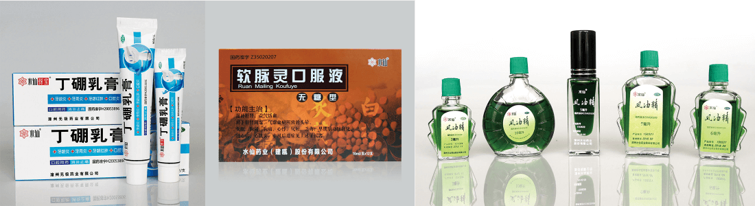 公司主導(dǎo)產(chǎn)品為水仙牌系列產(chǎn)品:風(fēng)油精、無(wú)極膏、丁硼乳膏、軟脈靈、滿山白、眠安寧等。