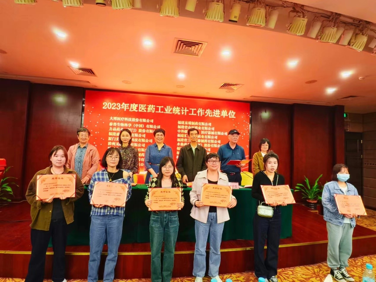 本次會議中,水仙藥業(yè)股份有限公司和無極藥業(yè)有限公司分別榮獲2023年度福建省醫(yī)藥工業(yè)統(tǒng)計先進(jìn)單位的榮譽(yù)證書。水仙藥業(yè)統(tǒng)計員鄭毅娜獲得了2023年度統(tǒng)計先進(jìn)個人的榮譽(yù)證書。